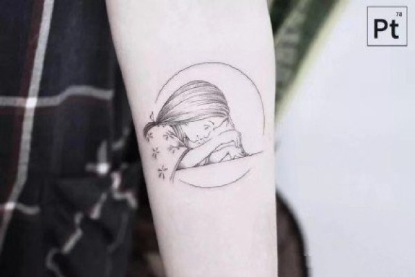 15款女神纹身小清新纹身月亮简单个性线条纹身图案