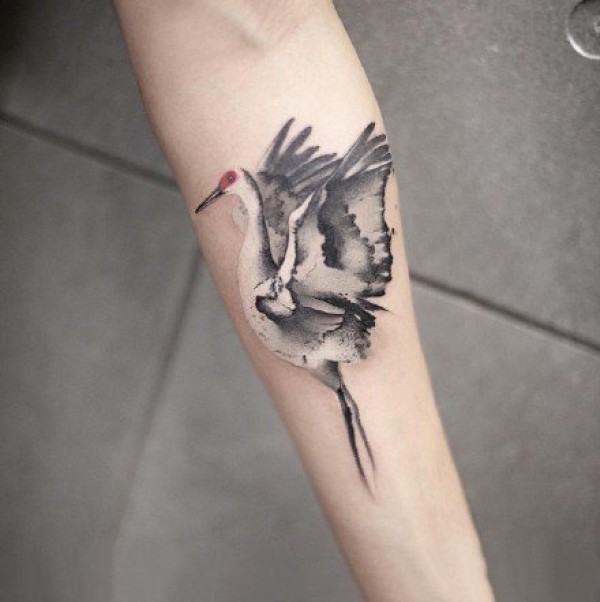 仙鹤纹身 9张水墨中国风的仙鹤纹身图片