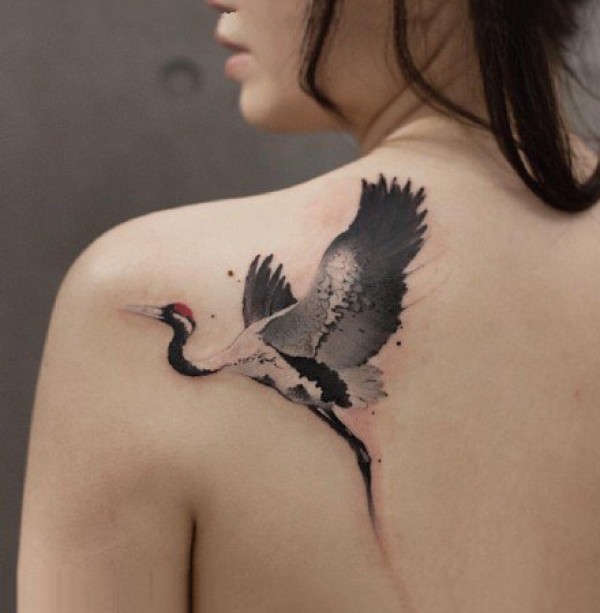 仙鹤纹身 9款传统中国风格的仙鹤纹身图片