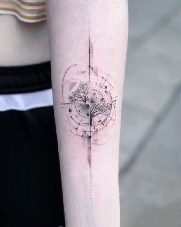 小臂上很有设计感的点线纹身图片