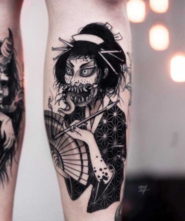 暗黑纹身图案--16张暗黑风格的手臂和腿部的纹身图案
