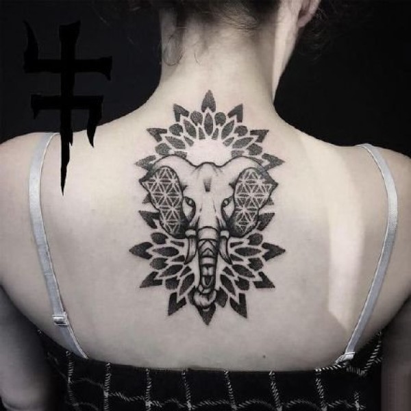 莲花图腾:适合女生做在后背的莲花纹身图片
