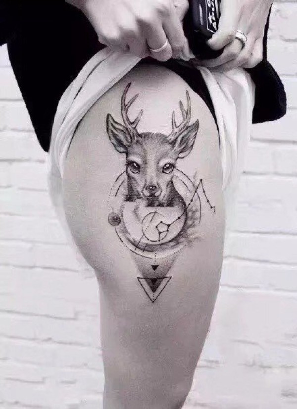 性感女生大腿可爱好看的梅花鹿纹身图图片
