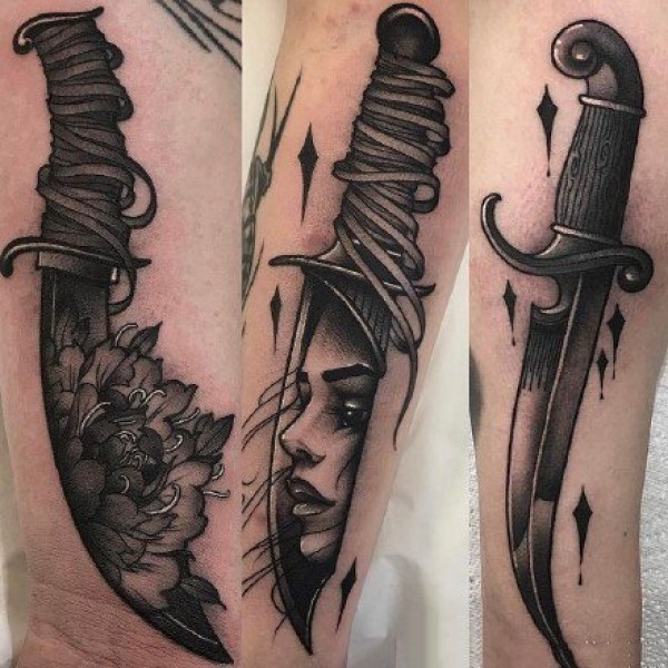 oldschool风格的一组小刀匕首纹身作品