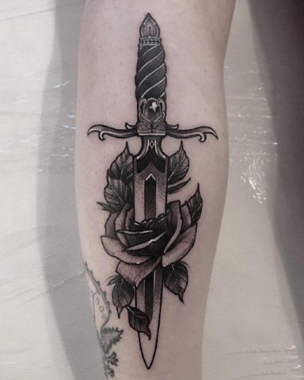 欧美匕首纹身 锋芒逼人的匕首纹身图案