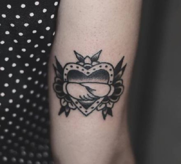 心脏纹身图案 女生手臂上黑灰纹身心脏纹身图案