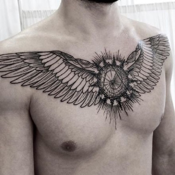 花胸纹身--一组男性霸气的大花胸纹身图案作品欣赏