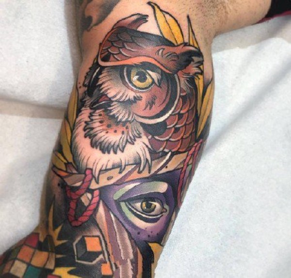 鹰纹身--一组彩色的猫头鹰等鹰纹身作品欣赏