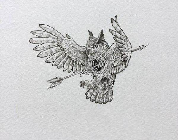 猫头鹰刺青:一组猫头鹰的手稿和纹身作品赏析