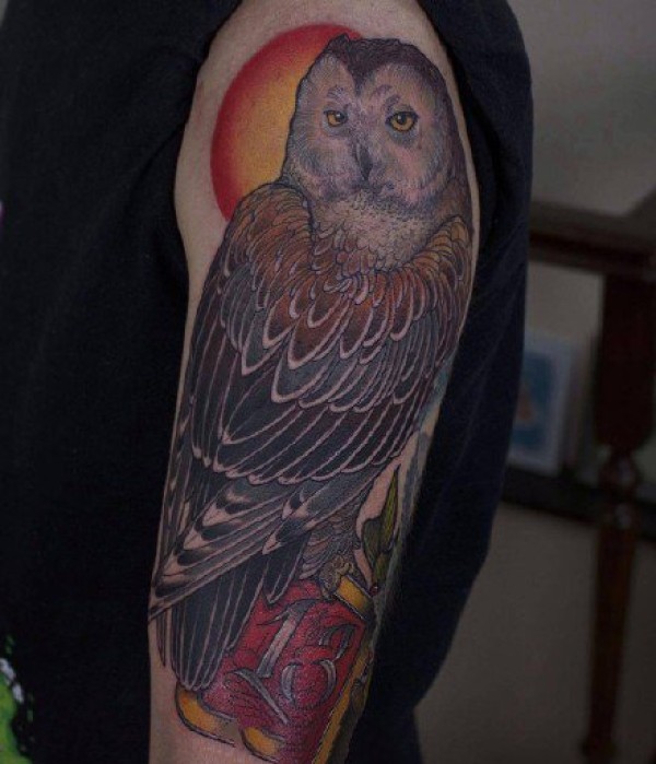 鹰纹身--一组彩色的猫头鹰等鹰纹身作品欣赏