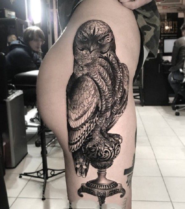 鹰纹身--一组彩色的猫头鹰等鹰纹身作品欣赏