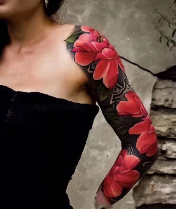 花臂女神:传统的一组女性大花臂纹身图案9张