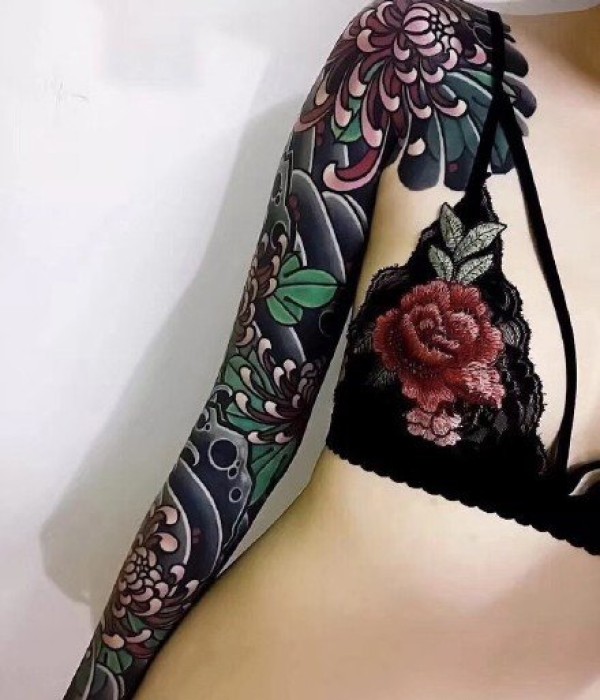 花臂女神:传统的一组女性大花臂纹身图案9张