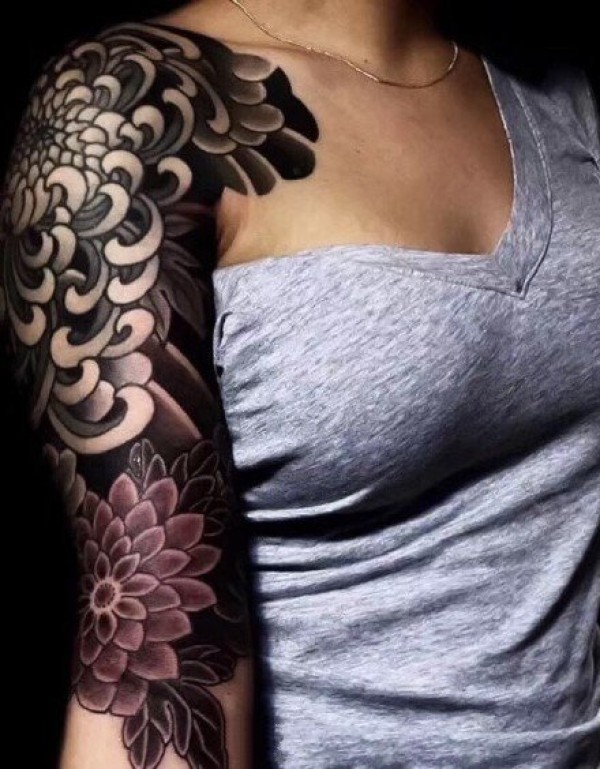 花臂女神:传统的一组女性大花臂纹身图案9张
