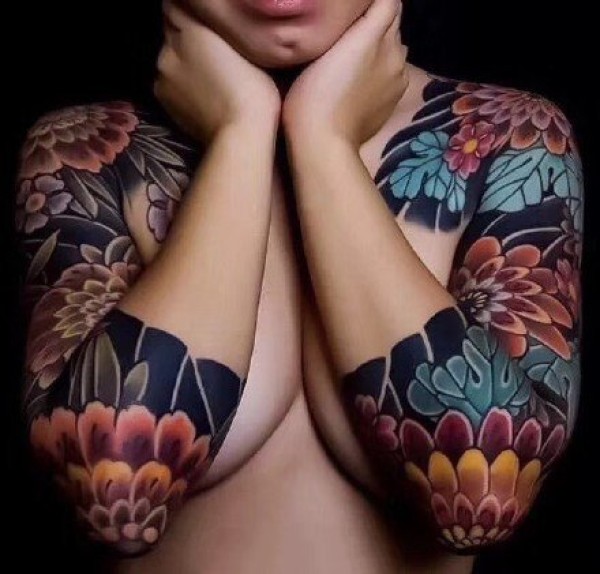 花臂女神:传统的一组女性大花臂纹身图案9张