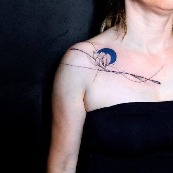 一组线条图案与蓝色圆形结合纹身作品