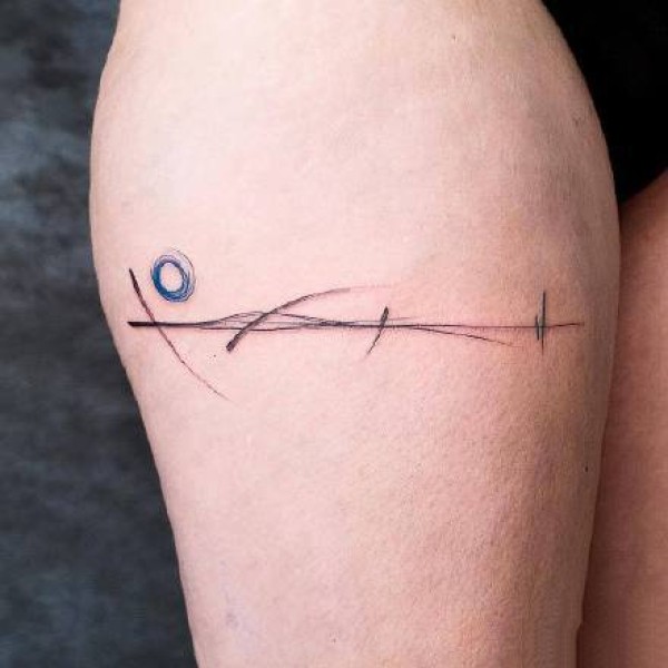 一组线条图案与蓝色圆形结合纹身作品