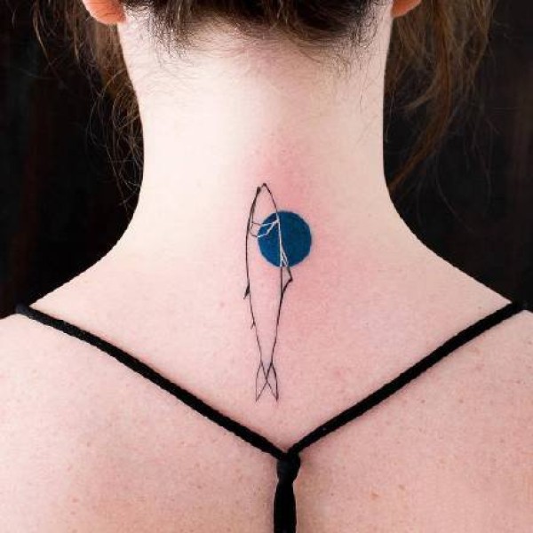 一组线条图案与蓝色圆形结合纹身作品