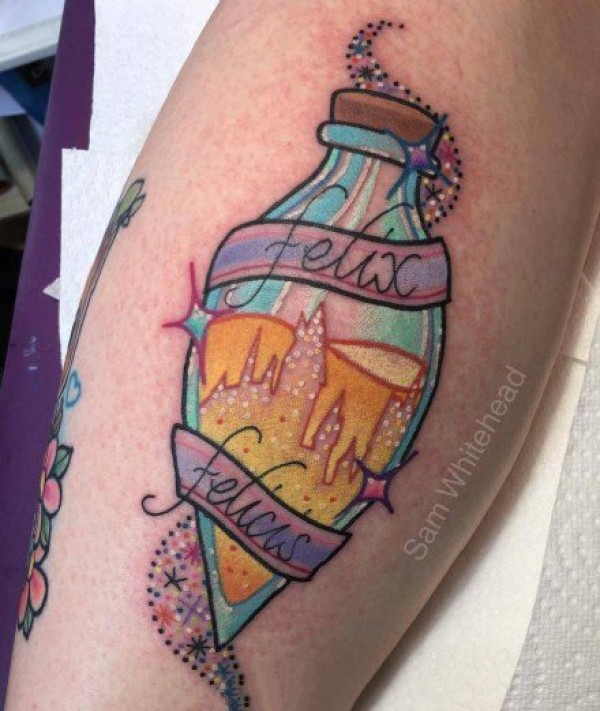 school风格的彩色瓶瓶罐罐瓶子纹身图案