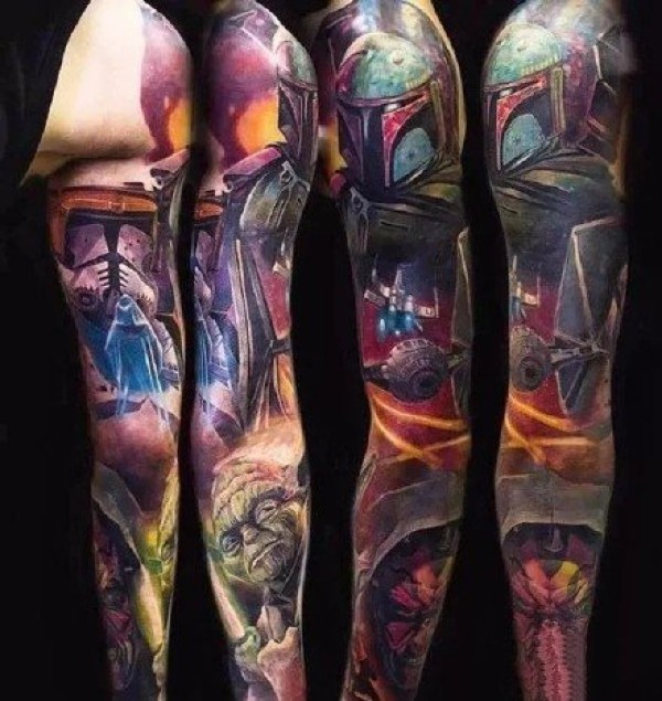 梦幻炫彩的一组大花臂纹身作品欣赏