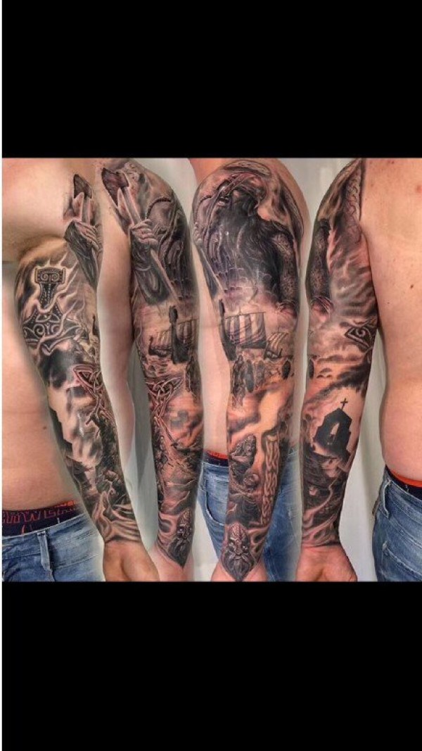 欧美花臂纹身_22张霸气黑灰欧美大黑花臂纹身图案作品图片