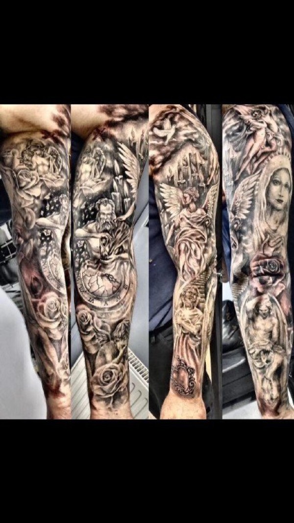 欧美花臂纹身_22张霸气黑灰欧美大黑花臂纹身图案作品图片