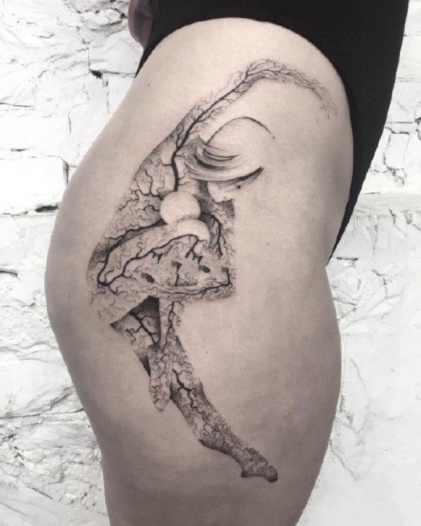 适合女性的一组性感黑灰线条纹身图片