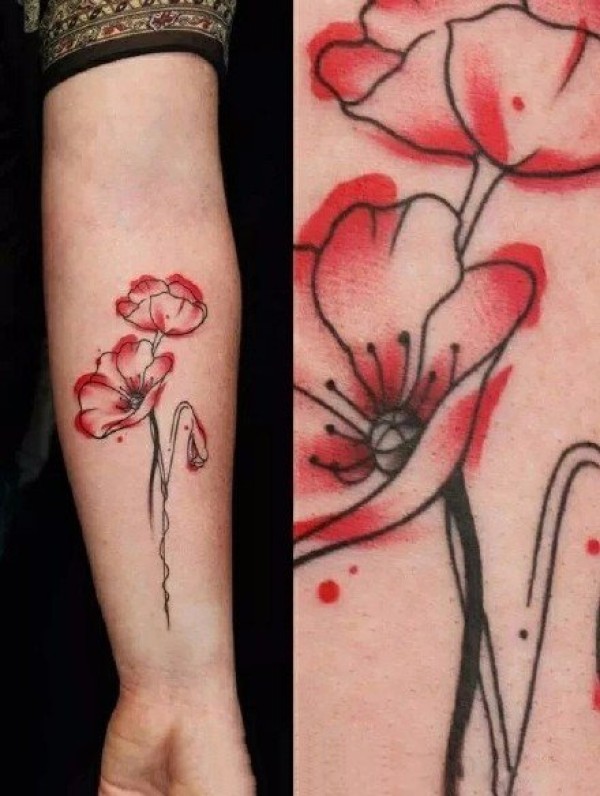 罂粟花纹身图--几张红色艳丽的唯美罂粟花纹身图案作品