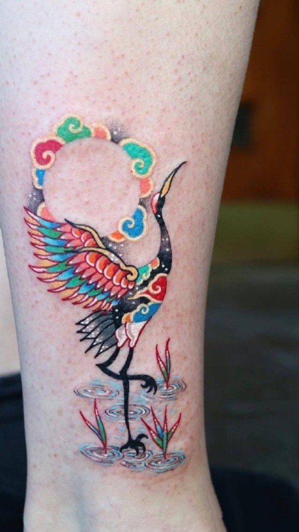 小腿小臂的日式传统炫彩色纹身图片9张