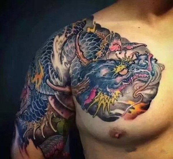 半甲纹身图片半甲观音神兽唐狮纹身图片纹身_半甲纹身图案大全_纹身图吧