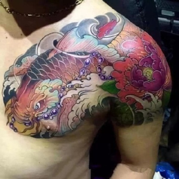 来自中国经典的传统半甲喜庆鲤鱼牡丹纹身手稿_半甲纹身图案大全_纹身图吧