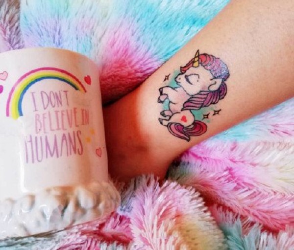 女生脚踝彩色独角兽纹身图片