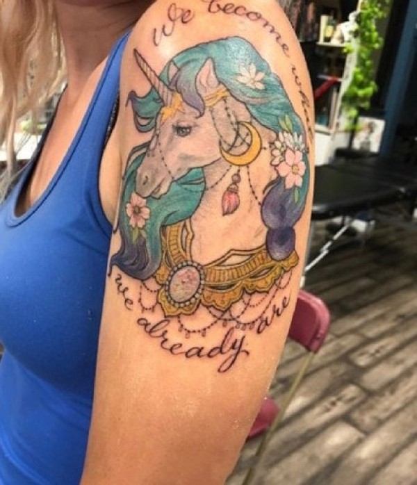 独角兽刺青:好看的一组独角兽纹身图案9张