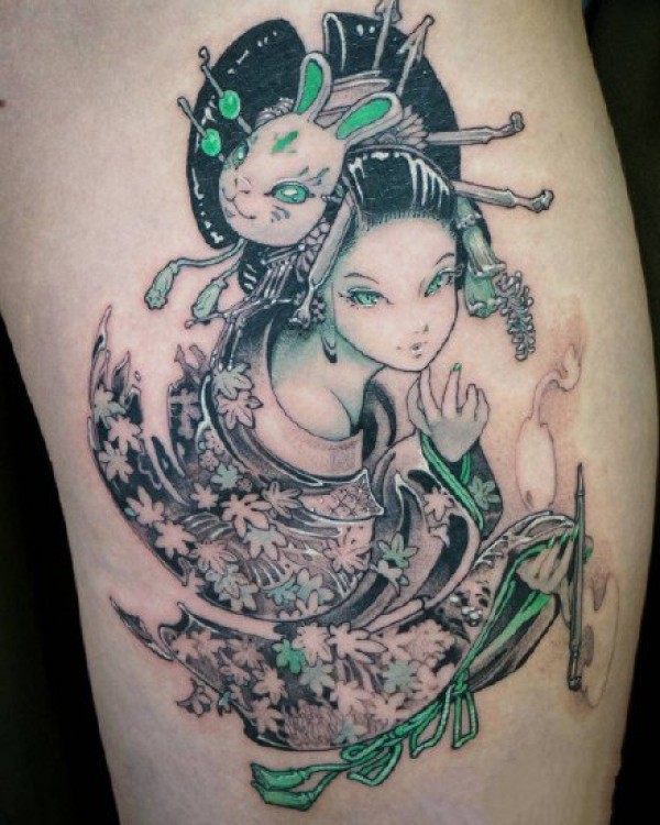 二次元动漫风格的卡通女生纹身作品