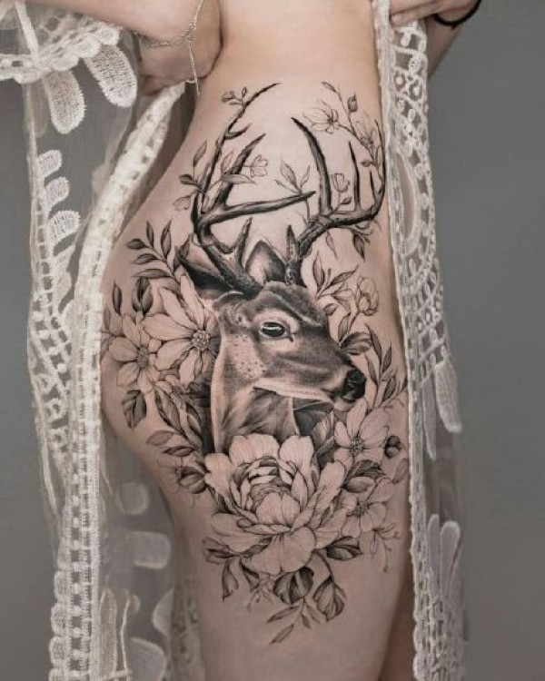 鹿头文身:一组漂亮的小鹿头纹身作品9张