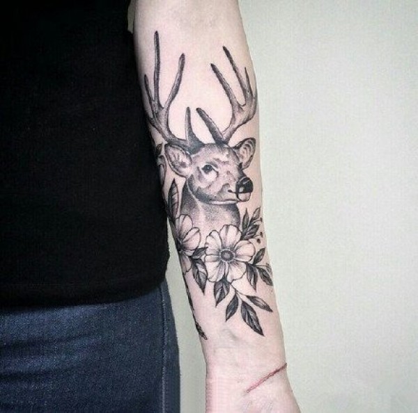 鹿角和小花花组合的黑灰纹身作品9张