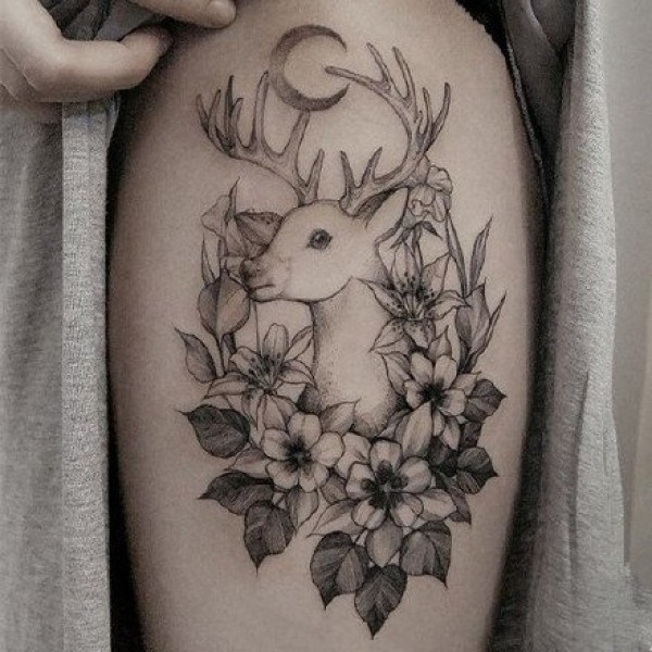 9张和鹿角鹿头相关的纹身图案作品欣赏