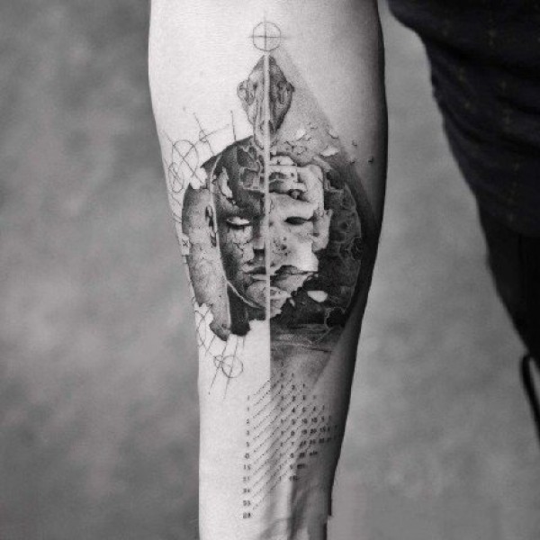 人物肖像纹身 男生手臂上黑色的人物纹身图片