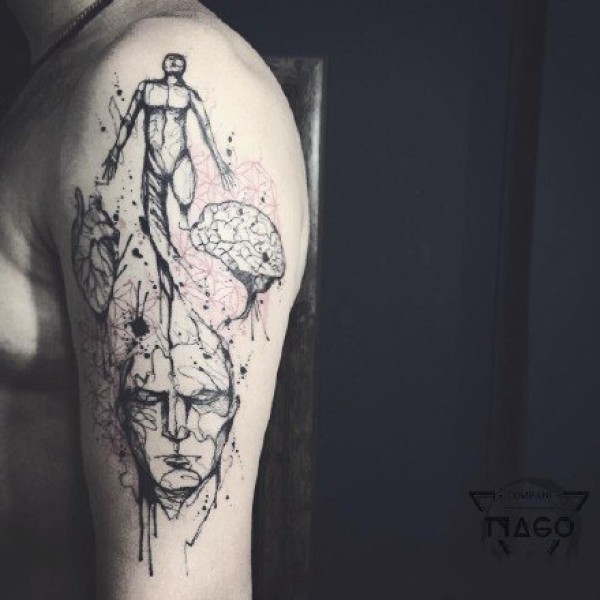 人物肖像纹身 男生手臂上黑色的人物纹身图片