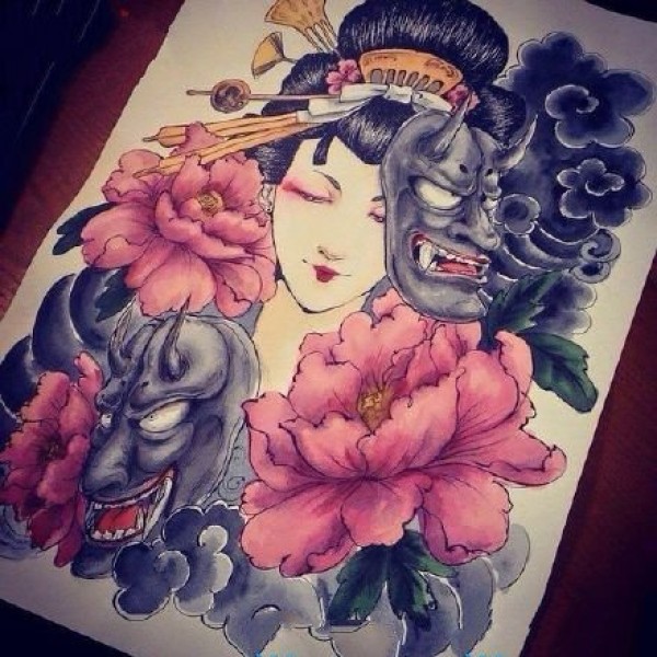 9张艺妓相关的艺伎纹身手稿和图案作品欣赏