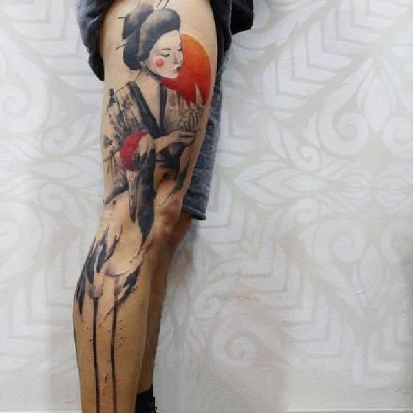 艺伎纹身--一组独特创意的日式艺妓纹身图案作品