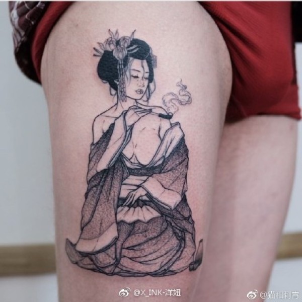 艺伎纹身--一组独特创意的日式艺妓纹身图案作品
