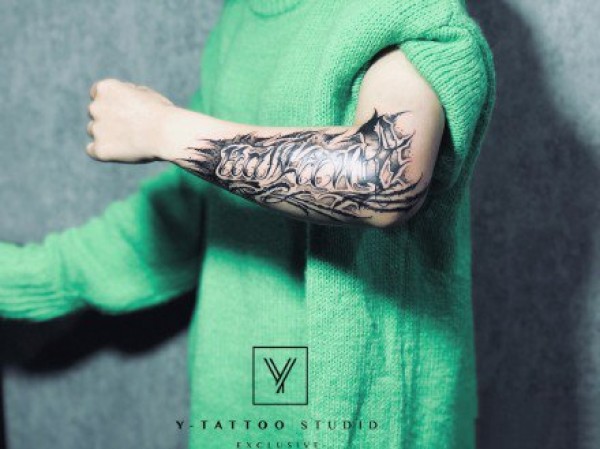 9张胳膊上很有个性的黑色英文花体字纹身图案