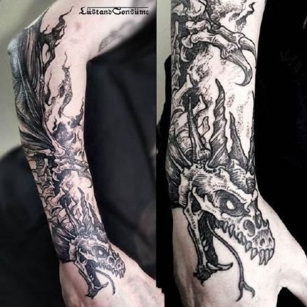 龙纹身手稿_一组老传统黑灰龙手稿纹身图案