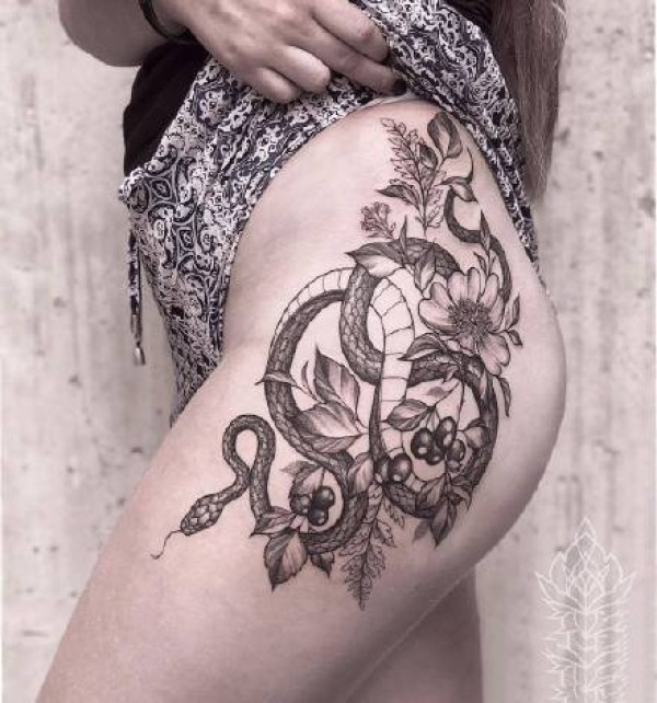 性感美女大腿部细腻漂亮的蛇纹身图片