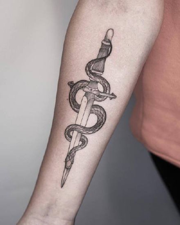 小蛇纹身:适合女士的一组黑灰纹身小蛇图案