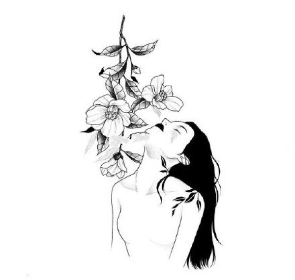 女郎线稿--22张优秀的欧美女郎纹身线稿手稿图案