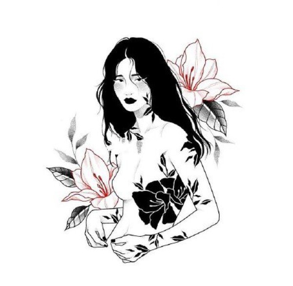 女郎线稿--22张优秀的欧美女郎纹身线稿手稿图案