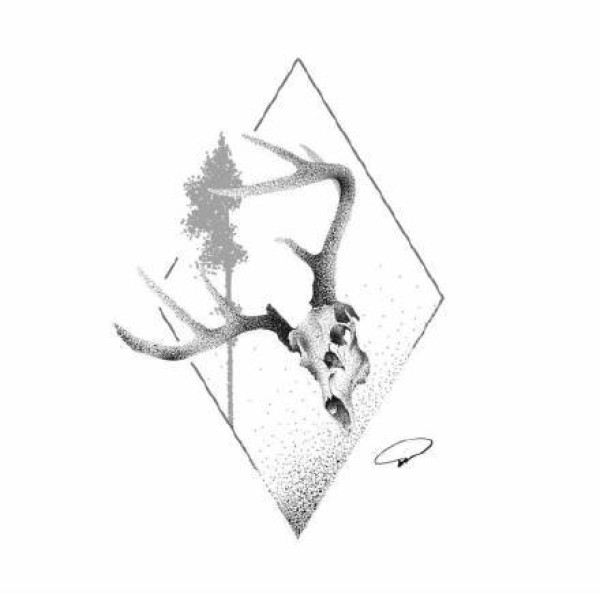 黑灰鹿几何纹身手稿