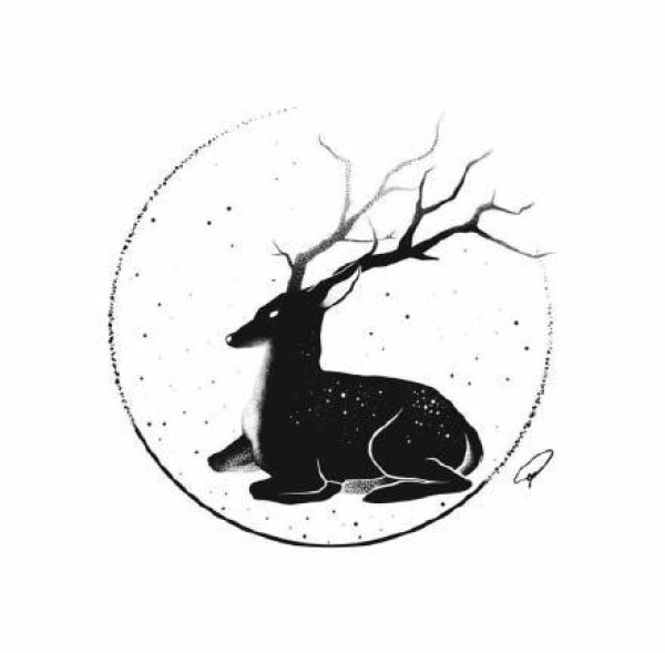 点刺小鹿手稿:几何点刺圆形中的小鹿纹身素材图片